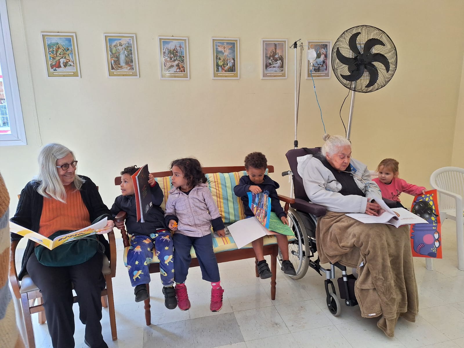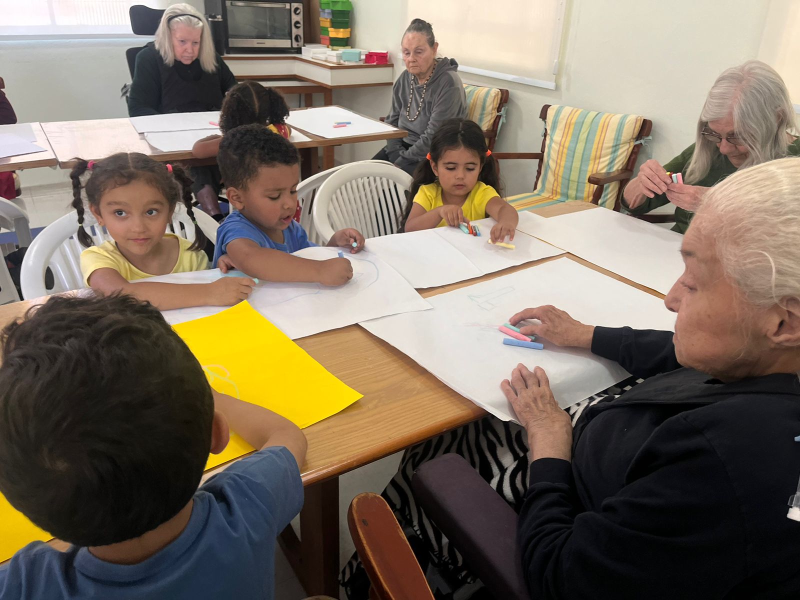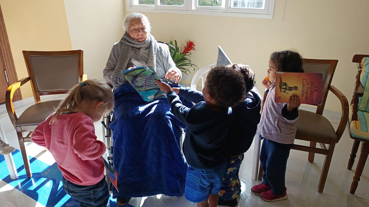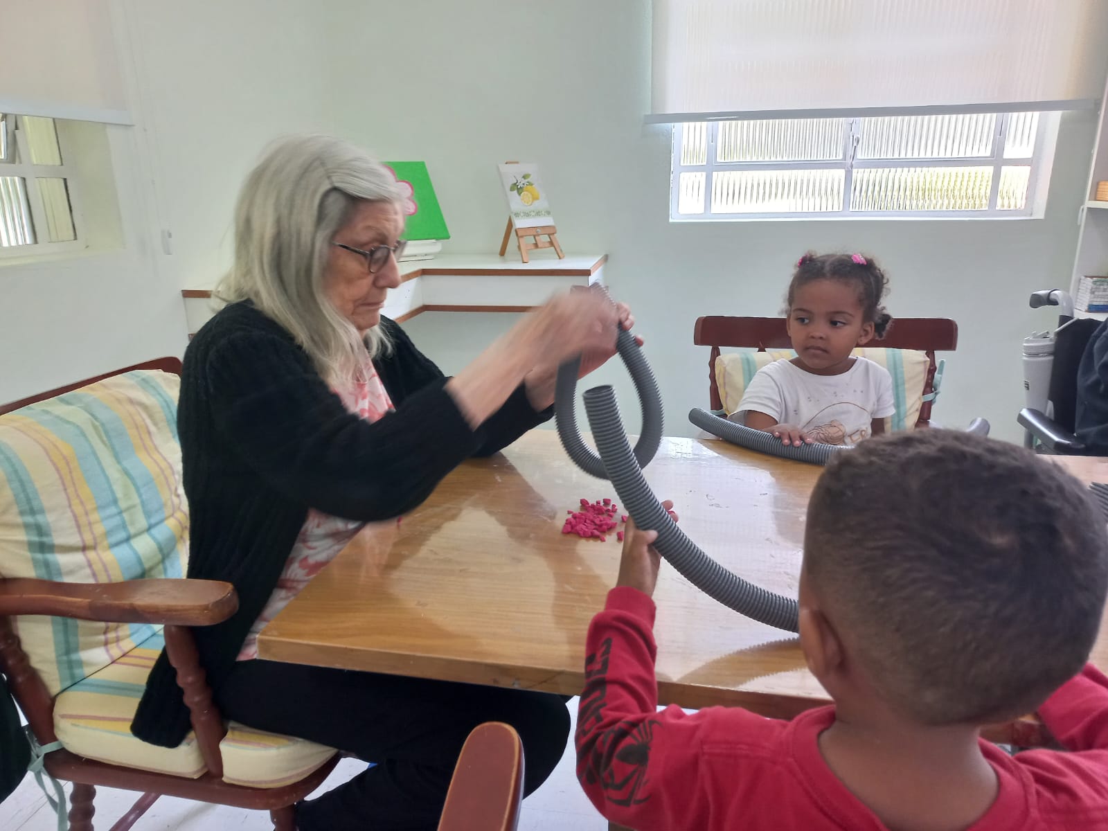 Esta ação é desenvolvida com crianças a partir de 3 anos, dos Centros de Educação Infantil (CEIs), e com os idosos que residem no Lar Sant’Ana. As vivências acontecem duas vezes por semana, com pequenos grupos de 12 crianças, acompanhadas por professoras/es, auxiliares de desenvolvimento infantil, coordenadores pedagógicos e profissionais do Lar Sant’Ana.