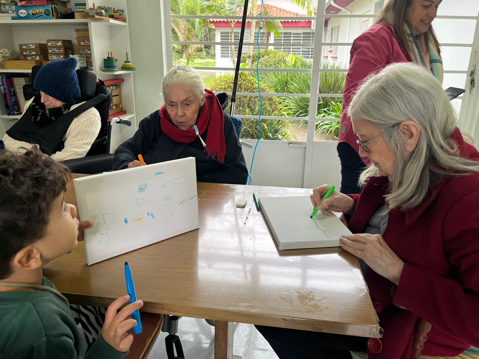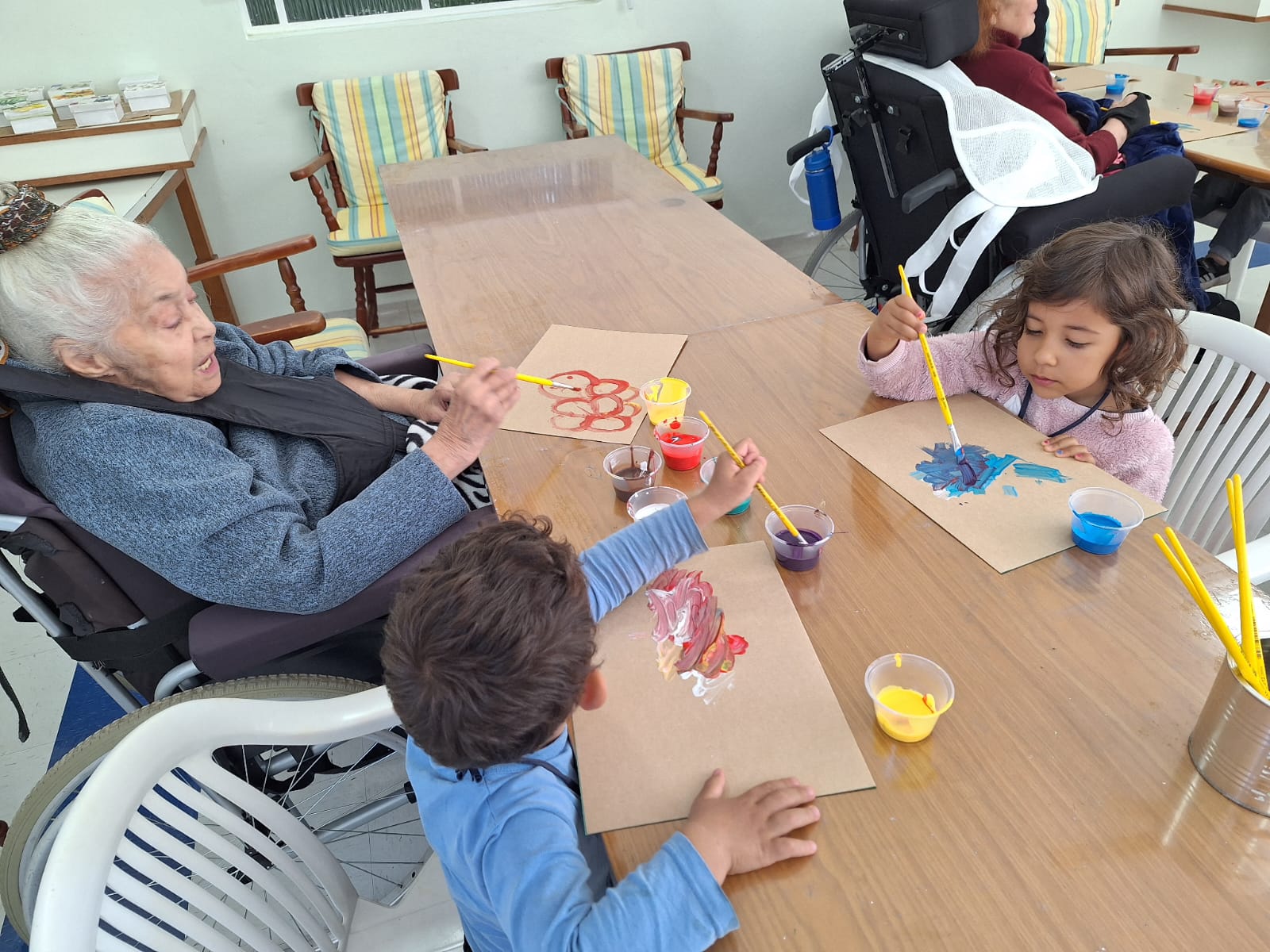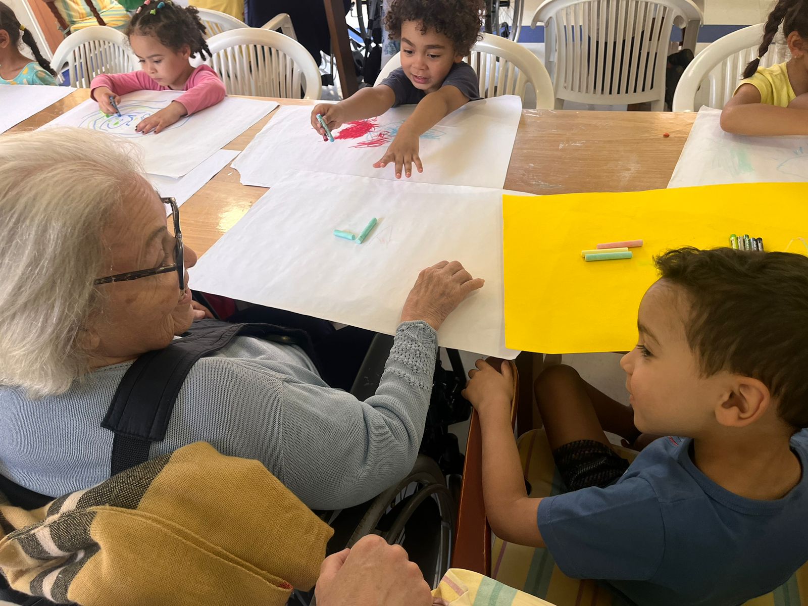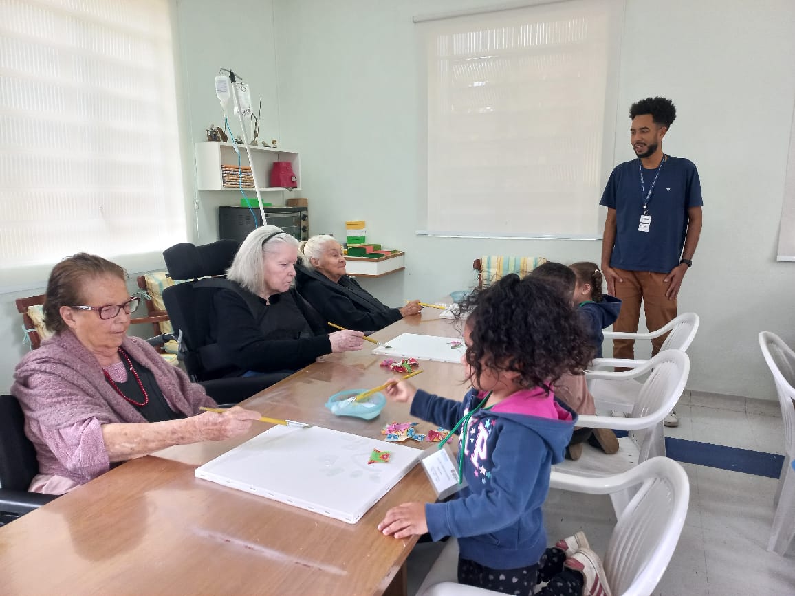 Durante os encontros, as propostas ofertadas são planejadas, promovendo as brincadeiras e interações e possibilitando o encontro entre as duas gerações. As rodas de música, contação de histórias, pinturas com diferentes materiais, construções e jogos adaptados, como bilboquê, boliche, peteca e bola ao cesto, são vivências que favorecem o contato, o cuidado mútuo, a inclusão e a criatividade.