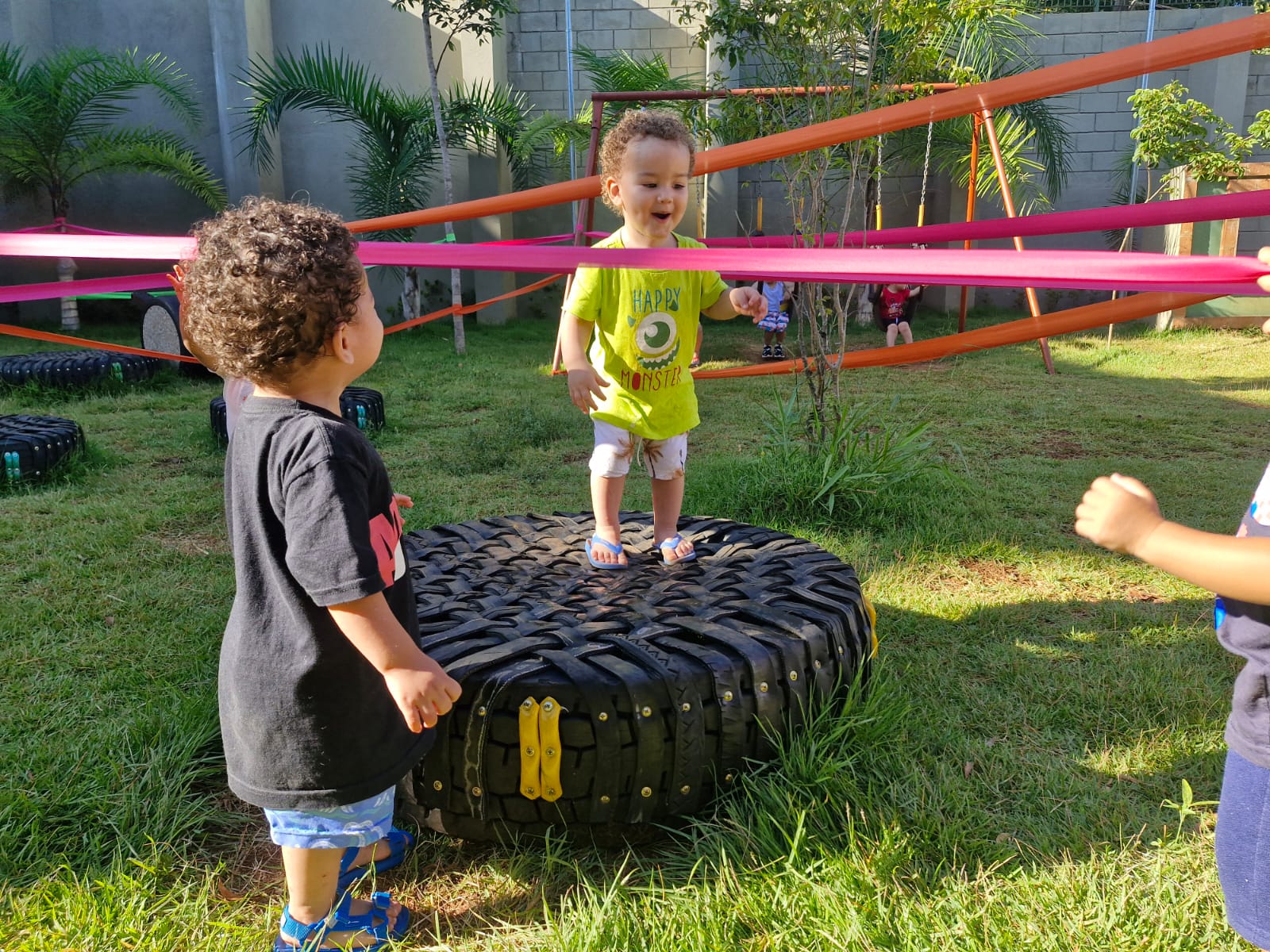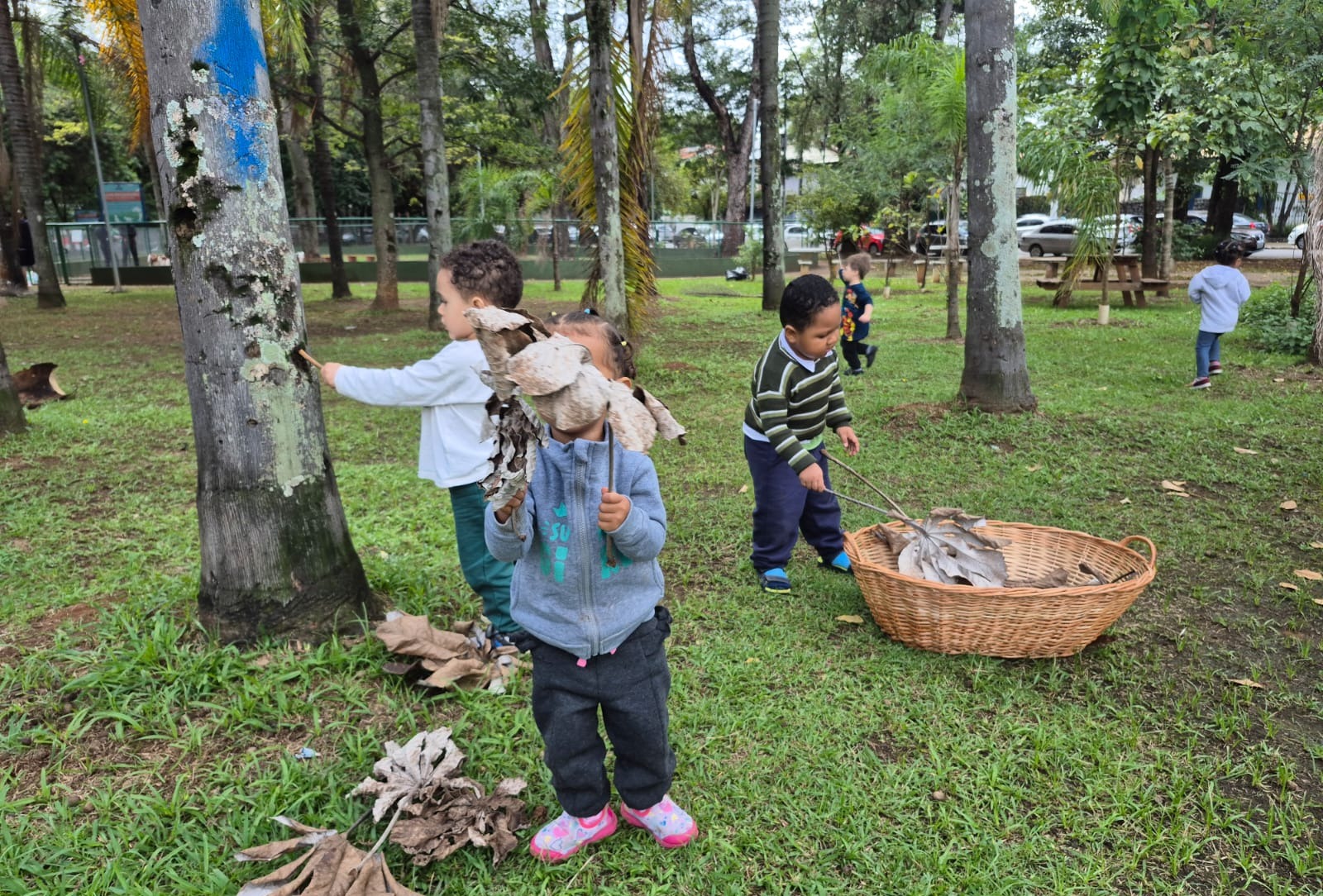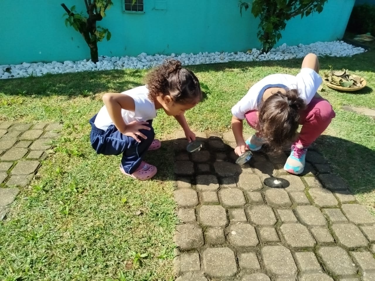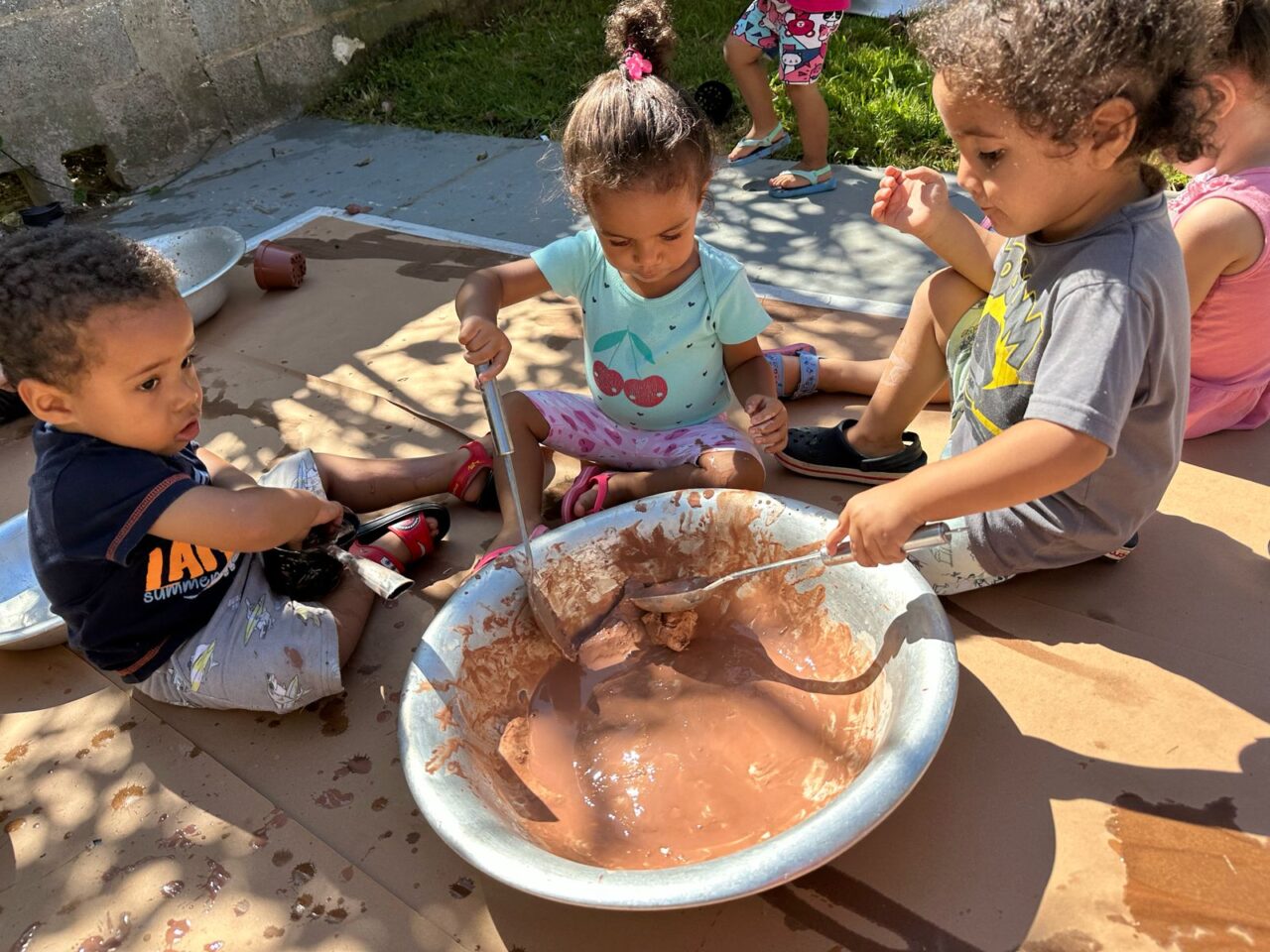 A exploração dos elementos naturais faz com que os bebês e as crianças conheçam as características, as propriedades e as brincadeiras de faz de conta que acontecem. A terra e a areia se transformam em “comidinhas”, os gravetos são usados na maior parte das brincadeiras como utensílio para as misturas da terra ou da areia com a água. E as folhas? Ao serem lançadas no ar, quando descem como “chuva”, dão um espetáculo de cores e sensações. Os sorrisos e a diversão são garantidos quando percebem o toque das folhas em seus corpos.