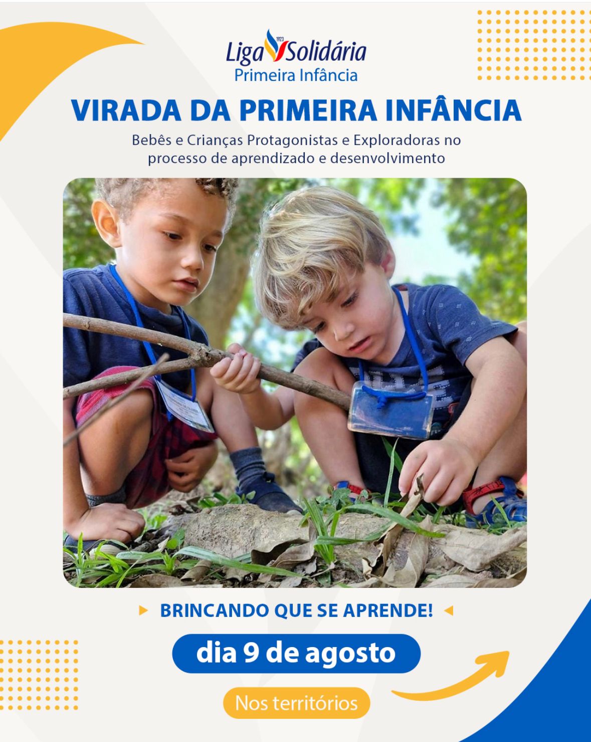 A Virada da Primeira Infância chega para reencantar o olhar sobre as infâncias, reconhecendo o brincar como linguagem expressiva de bebês e crianças, como eixo central para o desenvolvimento integral. Com o tema “Brincando que se aprende”, a proposta convida familiares, educadoras/es, redes locais e a sociedade como um todo a valorizar o direito da criança de “sonhar, imaginar, criar e crescer em seu próprio tempo”.